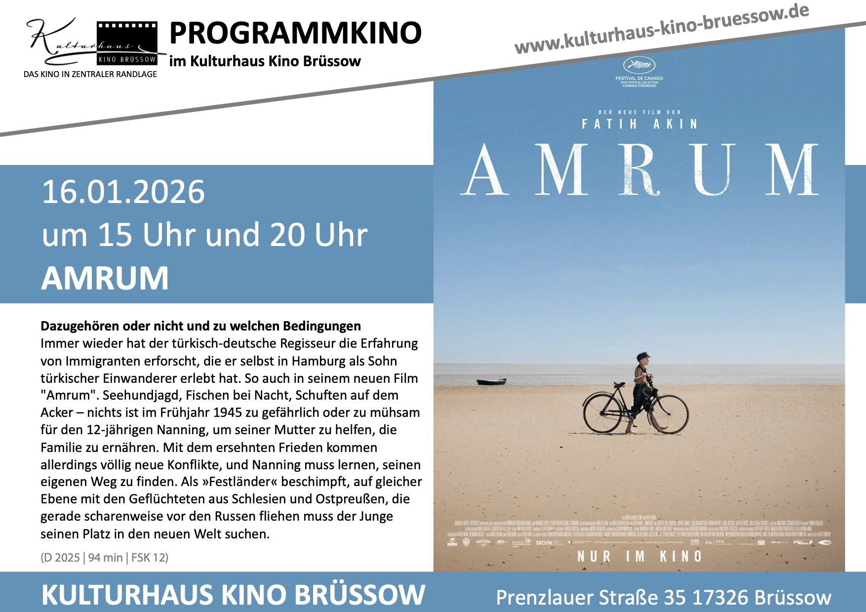 Ort: Kulturhaus Kino Brüssow, Prenzlauer Str. 35, 17326 Brüssow
